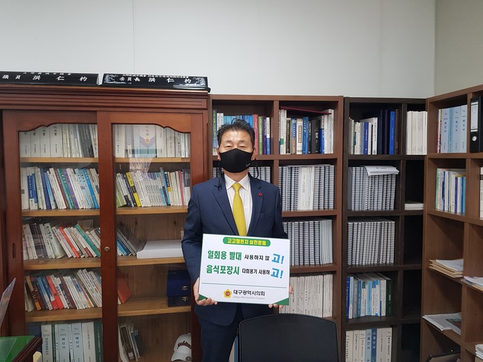 [대구=세계타임즈 한성국 기자] 대구광역시의회 홍인표 의원(경제환경위원장, 중구1) 이 2월 24일(수) 생활 속 탈(脫) 플라스틱 실천운동인 ‘고고챌린지’ 운동에 참여하고 다음 주자를 지명하였다.