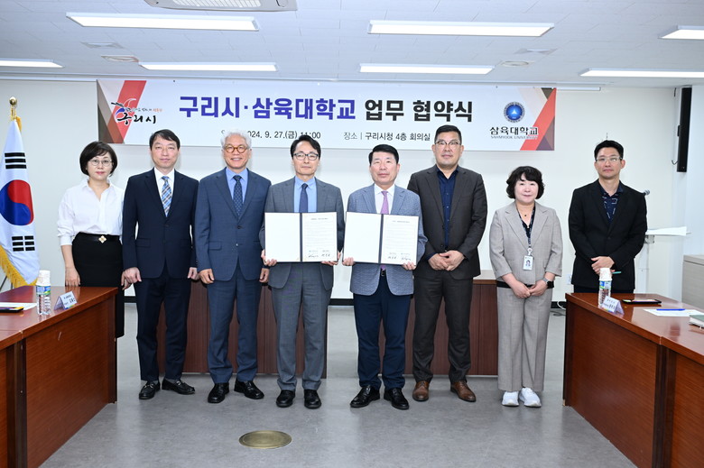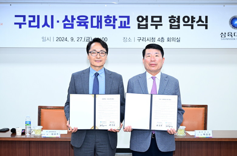 [구리시 세계타임즈=송민수 기자] 구리시(시장 백경현)는 9월 27일 시청 4층 회의실에서 삼육대학교(총장 제해종)와 지역사회 발전과 사회적 가치 창출을 위한 업무협약을 체결했다.