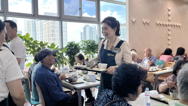 [서울 세계타임즈=이장성 기자] 서울특별시의회 기획경제위원회 소속 구미경 의원(국민의힘, 성동2)은 7월 23일(수), 꽃재교회에서 열린 ‘제8회 브라보시니어’ 지역 어르신 초청 행사에 참석해 삼계탕 배식 봉사를 진행하고 따뜻한 인사말을 전했다.