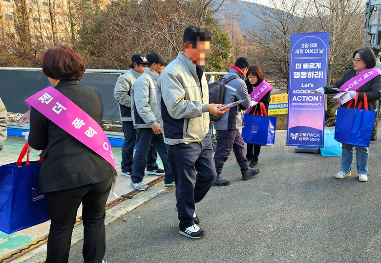 [거제시 세계타임즈=최성룡 기자] 거제YWCA성폭력상담소(소장 손영순)는 6일~7일 양일간 2025년 세계 여성의 날(3월 8일)을 맞이해 거제시 아주동과 고현동에서 ‘2025 세계 여성의 날-더 빠르게 행동하라!’캠페인을 진행했다.