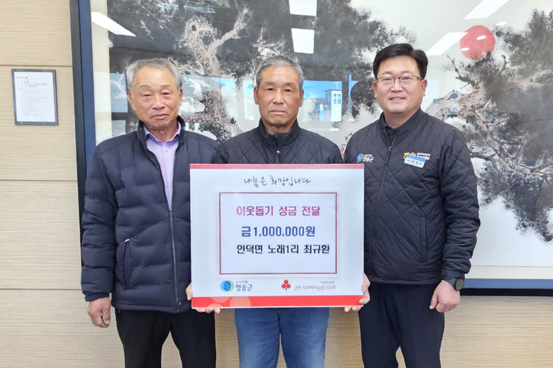 [청송군 세계타임즈=한윤석 기자] 청송군(군수 윤경희)은 지난 15일 안덕면에서 과수 농사를 짓고 있는 최규환 씨가 작년에 이어 올해도 이웃돕기성금 100만 원을 안덕면행정복지센터에 전달했다고 밝혔다.