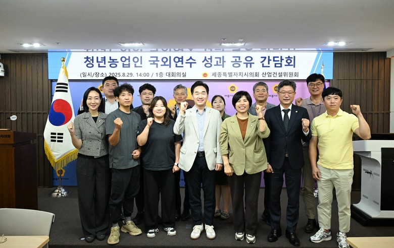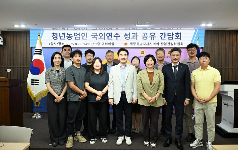 [세종 세계타임즈=이채봉 기자] 세종특별자치시의회(의장 임채성) 산업건설위원회(위원장 김재형)는 29일 오후 의회 청사 1층 대회의실에서 ‘청년농업인 국외연수 성과 공유 간담회’를 개최했다.