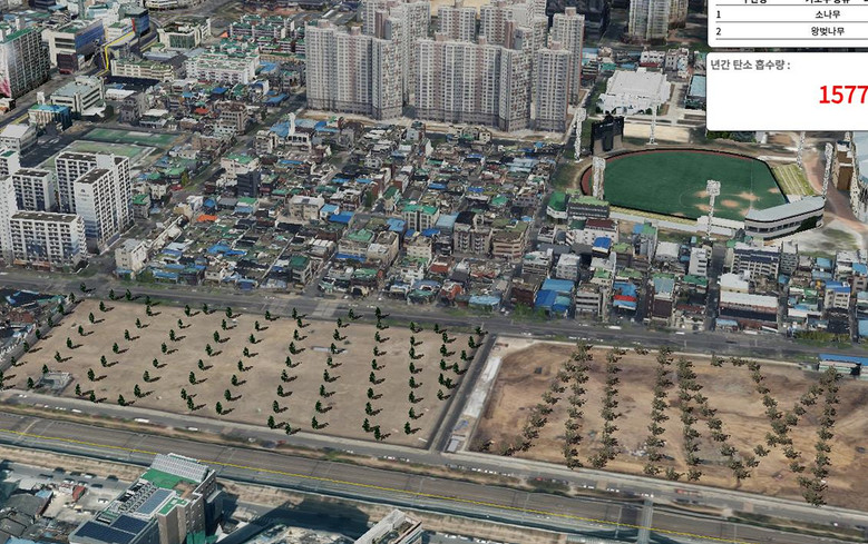 | ▲ 지도서비스 예시 가로수 배치 후 |