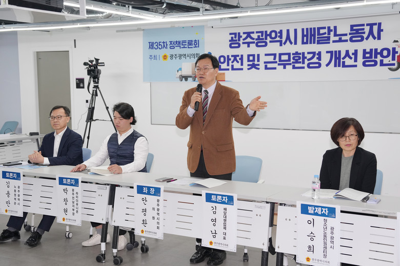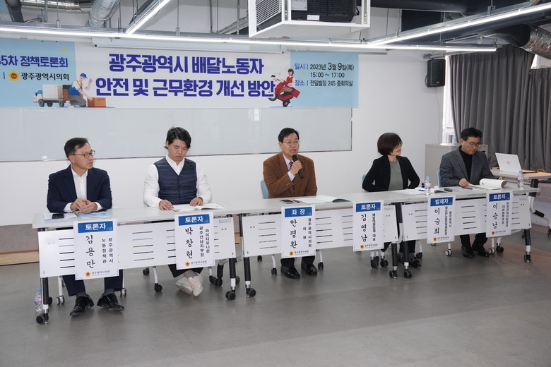 이번 토론회는 광주광역시의회 주최로 이승희 광주청소년노동인권센터장이 발제에 나섰으며, 토론자는 이승남 비정규직지원센터 대외협력국장, 김영남 배달대행업체 대표, 박창현 라이더유니온 광주전남지부장, 김용만 광주광역시 노동정책관이 참여했으며 좌장은 안평환의원이 맡아 진행됐다.
