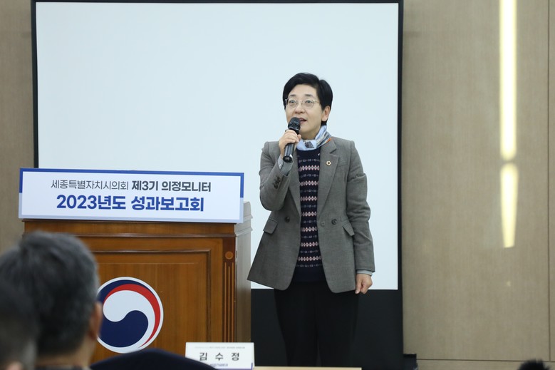 [세종 세계타임즈=이채봉 기자] 세종특별자치시의회(의장 이순열)는 22일 정부세종컨벤션센터에서 2023년도 제3기 의정모니터단 성과보고회를 개최하여 의정모니터단과 시의회가 함께 한 해를 마무리하는 시간을 가졌다.