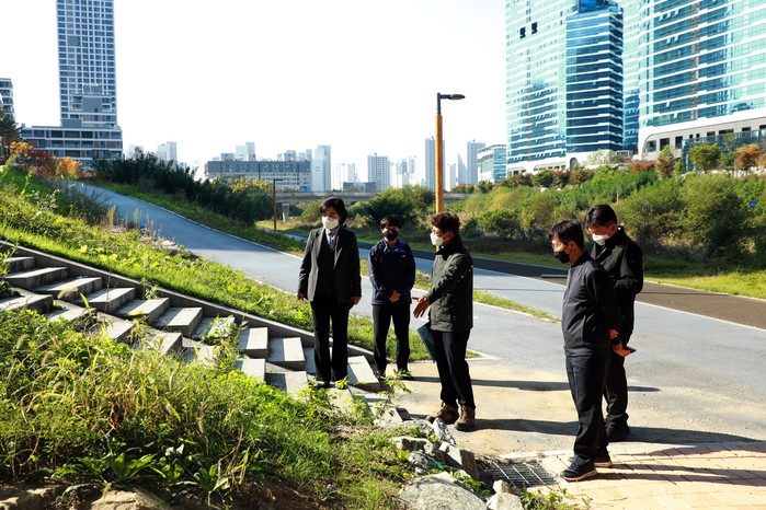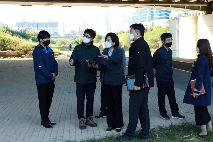 그 과정에서 ▲제천변 자전거길과 보행로 구분을 위한 옐로 카펫과 같은 노란색 노면 표시 ▲나릿재1교 조명 조도 점검 ▲나성4교 옆 계단 신설 시 계단 손잡이 설치 ▲나성4교 하단과 계단을 잇는 공간에 추가 조명 설치 등을 통한 우범화 방지에 대한 논의가 있었다.
