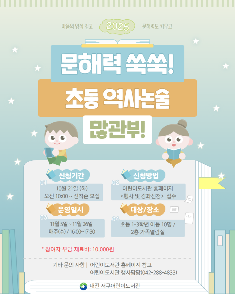 서구 어린이도서관, 문해력 쑥쑥 초등 역사논술 운영