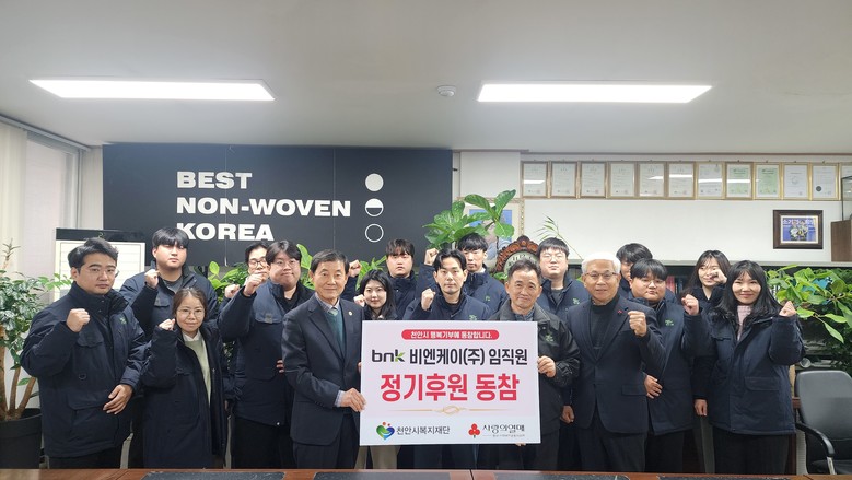 이대성 비엔케이 부사장은 “회사에서 추구하는 나눔의 가치를 일터와 일상에서 함께 실천하고 싶었다”며 “정기후원이 지역의 이웃들에게 작지만 꾸준한 힘이 되기를 바란다”고 말했다.