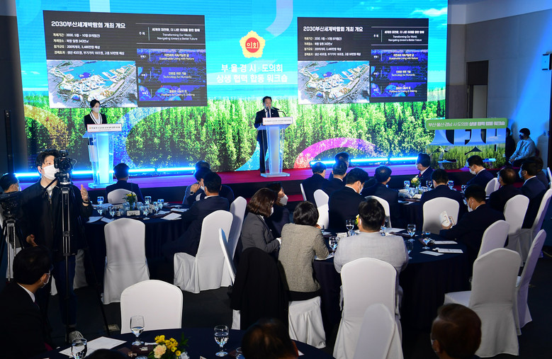 [경남 세계타임즈=최성룡 기자] 경상남도의회 김진부 의장 등 도의원 30여명은 25일 부산시의회에서 개최하는 ‘부·울·경 시·도의회 상생 협력 합동 워크숍’에 참석하여 2030부산세계박람회 유치 협조 등 각종 현안에 대해 향후 3개 시도의회에서 함께 협력을 하기로 다짐했다.