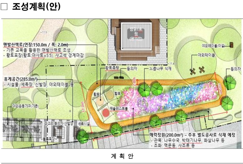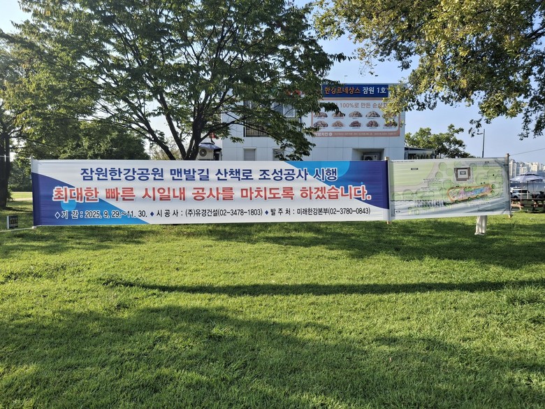 이번 사업은 잠원한강공원(압구정동 386 일원, 신사나들목 인근)에 총 150m 길이의 맨발산책로를 설치하고, 시민들이 쾌적하게 이용할 수 있도록 세족장·신발장·휴게공간 등을 함께 조성하는 사업이다. 총 사업비는 3억2천만원(320백만원) 규모로, 연내 완공을 목표로 진행된다.