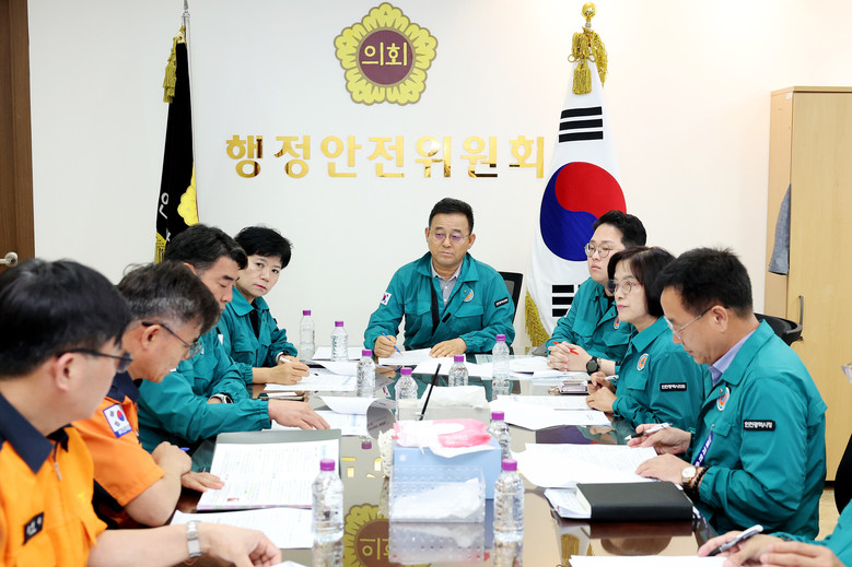 20일 인천시의회 행정안전위원회에 따르면 지난 19일 시의회에서 김재동(국·미추1) 위원장을 비롯해 유승분(국·연수3)·김대영(민·비례) 부위원장, 김명주(민·서구1)·신영희(국·옹진) 의원, 인천소방본부장·시민안전본부장 등이 참석한 가운데 인천시 재난안전대책본부 운영 사항과 긴급 안전 대책 등 향후 대응 방안을 논의하고 관계 직원을 격려했다.