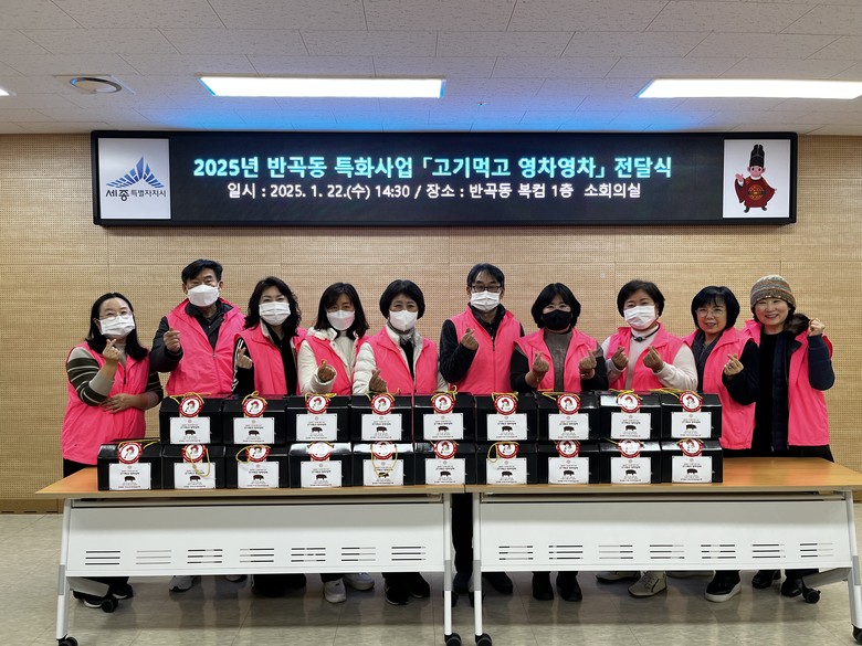 [세종 세계타임즈=이채봉 기자] 세종특별자치시 반곡동지역사회보장협의체(공동위원장 임준오·신미경)가 22일 취약 가구에 육류선물세트를 전달하고 대상자의 생활실태를 점검하는 ‘고기먹고 영차영차’ 사업을 진행했다.