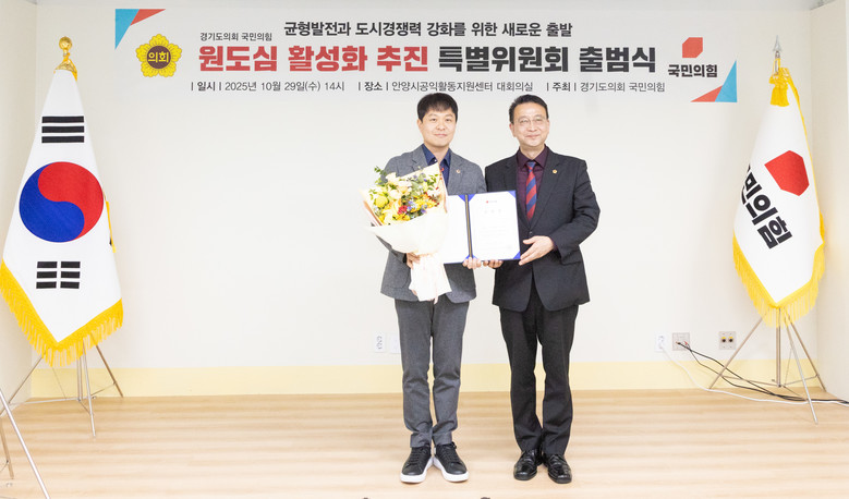 [경기도 세계타임즈=송민수 기자] 경기도의회 국민의힘(대표의원 백현종)은 29일 ‘원도심 활성화 추진 특별위원회’를 출범하고 특별위원장에 유영일(안양5) 의원을 임명했다.