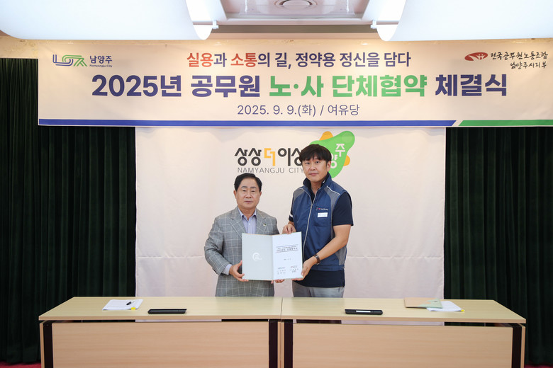 [남양주시 세계타임즈=송민수 기자] 남양주시(시장 주광덕)는 9일 시청 여유당에서 공무원 노사 단체협약 체결식을 개최했다고 밝혔다.