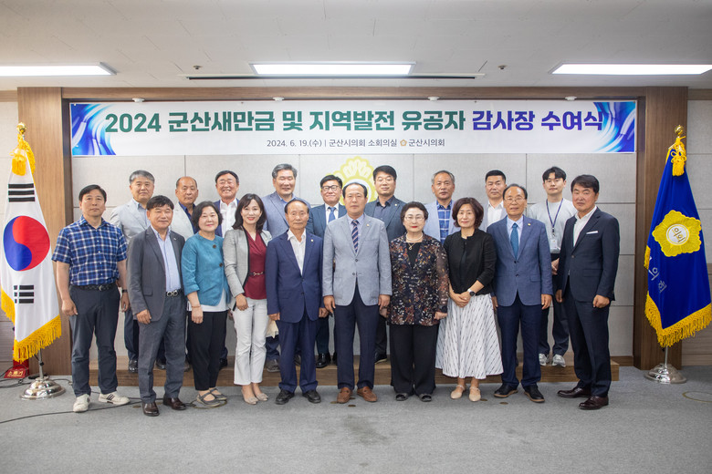 이번 시민의정감사장은 김경구·서동완·윤신애·서은식 등 시의원 4명과 이래범 대한노인회 군산시지회 회장, 김성희 군산시여성단체협의회 회장 등 개인이나 기관·단체 19명에게 수여했다.