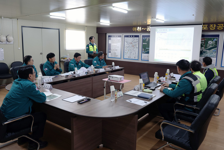 홍 부지사와 도 관계 공무원, 시공사 등 건설 현장 관계자 10여 명이 참석한 가운데, 이번 현장 점검은 공사 현황 보고, 현장 점검 등의 순으로 진행했다.