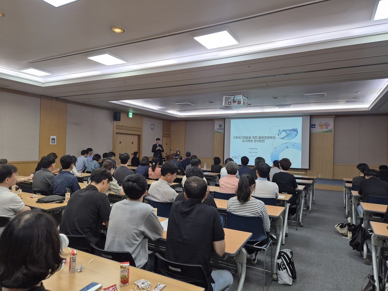특강에 나선 한국환경연구원 이승수 박사는 “대전은 3대 하천과 금강·대청호를 끼고 있는 지리적 특성상 가뭄보다는 집중호우에 따른 하천 범람, 도시 침수 위험이 크다”라며 “폭염으로 인한 녹조 발생과 수질 악화도 우려되는 만큼 하천·하수시설에 대한 선제적 정비가 필요하다”라고 강조했다.