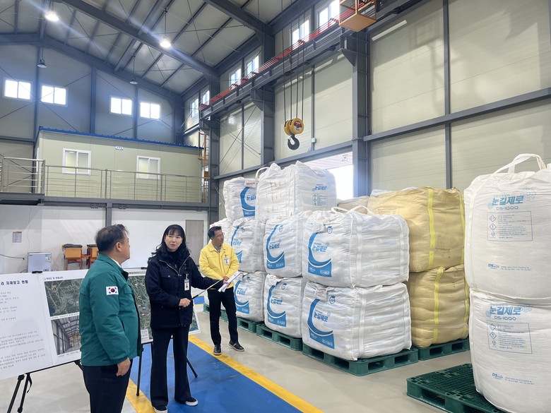 진주시 제설전진기지에는 염화칼슘 교반기, 염수 저장탱크, 제설제 323톤, 제설차량 8대 등 제설 장비·자재를 배치해 운영하고 있다. 박 부지사는 자재 비축현황과 장비 관리상태, 염수 제조 과정 등을 점검하고 유관기관 비상 연락망, 협업체계 등을 확인했다.