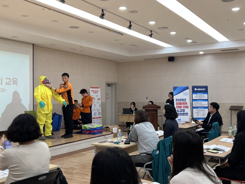 훈련 내용은 ▲생물테러 대비·대응체계 이론교육 ▲개인 보호복(Level A, C) 착·탈의 ▲다중탐지키트 사용 및 검체 포장·이송 등으로, 실습 중심의 체험형 훈련으로 진행됐다.