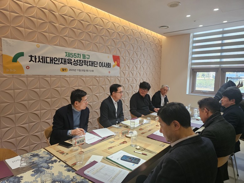 [동구 세계타임즈=이채봉 기자] 대전 동구(구청장 박희조)는 20일 (재)동구차세대인재육성장학재단(이하 장학재단) 제55차 이사회를 개최하고, 2025년도 장학금 지원을 위한 기부금 직접사용 승인(안)과 2026년도 장학사업 운영계획 등을 심의·의결했다고 밝혔다.