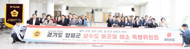 경기도의회 국민의힘 경기도 양평군 상수도 불균형 해소 특별위원회는 양평군의 오랜 숙원 사업인 상수도 보급 활성화와 수도요금의 합리적 산정을 추진하기 위해 출범했다. 양평군의 상수도 보급률은 2023년 기준 81%로 경기도 내 31개 시·군 평균 98% 대비 최하위 수준이며, 이로 인해 군내 일부 읍·면 지역의 경우 주민들이 마을 상수도 및 지하수에 의존함에 따라 수질 불안과 단수 피해 등 지속적인 불편을 겪는 것으로 알려졌다. 같은 해 기준 수도요금 또한 가정용 상수도 요금 980원, 일반용(영업용) 2,032원으로 경기도 평균 각 525원, 1,181원 대비 2배 수준으로 주민들의 부담이 가중되는 실정이다.
