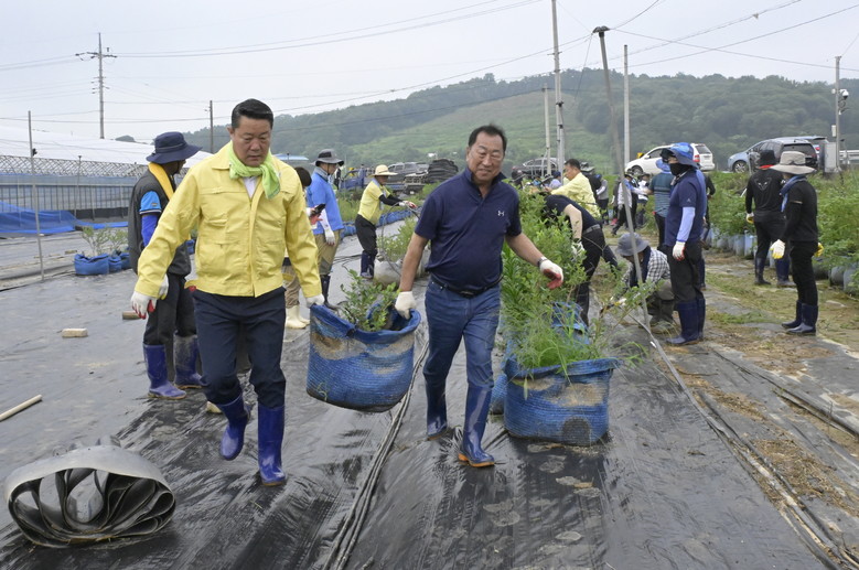최영일 군수를 비롯한 공무원들은 피해 지역별로 분산 배치돼 ▲주택 내 가재도구 정리 ▲하우스 내부 토사 제거 ▲쓰레기 분리수거 등을 집중적으로 수행했다.