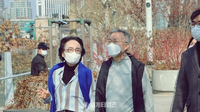 [세계타임즈 이영진 기자]열린민주당 김진애 서울시장 후보가 같은 당 최강욱 대표, 김성회 대변인과 서울 중구의 서울로7017을 찾아 서울시를 보행친화 도시로 만들겠다는 구상을 밝혔다.