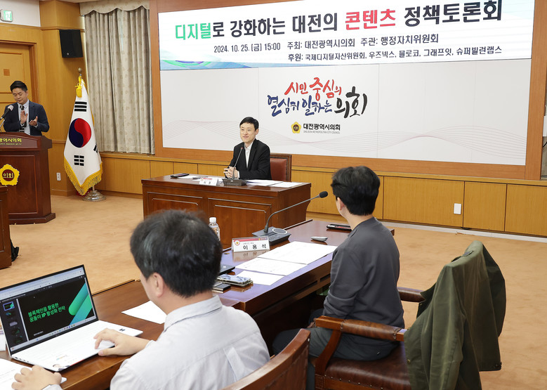 [대전 세계타임즈=이채봉 기자] 대전시의회가 주최하고 행정자치위원회가 주관하는 ‘디지털로 강화하는 대전의 콘텐츠 정책토론회’가 25일 15시 의회 3층 소통실에서 개최됐다.
