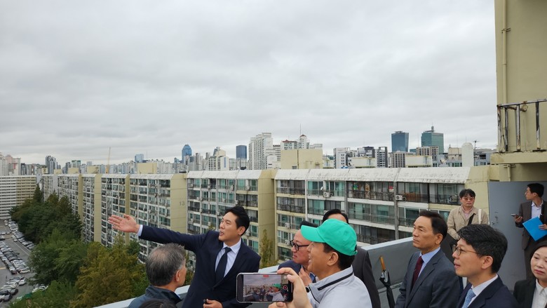 [서울 세계타임즈=이장성 기자] 서울특별시의회 김길영 시의원(국민의힘, 강남6)은 10월 13일(월) 고동진 국회의원(강남구 병), 오세훈 서울시장, 조성명 강남구청장, 강남구의원 등과 함께 지역구인 대치 은마아파트 재건축 현장을 방문하여 서울시 건축기획관으로부터 추진 현황를 보고 받고 아파트 옥상과 복도 등 노후시설을 점검하고 지역 주민 200여명과 함께 주민 간담회를 가졌다.