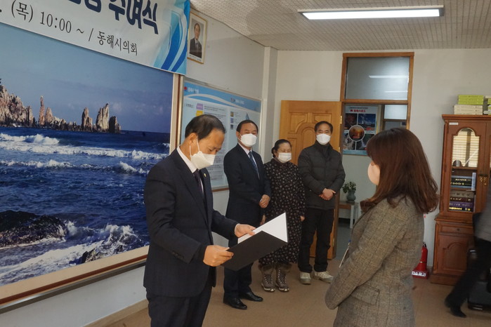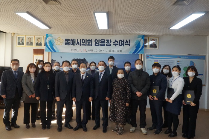 김기하 동해시의회 의장은 “2022년 1월 13일자 오늘 인사권 독립으로 새로이 출발하는 뜻깊은 날에 임용장을 받으신 직원분들께 축하드리며, 시민 중심의 일하는 의회의 공무원으로서 최선을 다해달라”고 당부했다.