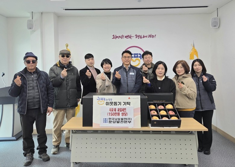 한국남동발전 분당발전본부는 10일 능평동 행정복지센터를 방문해 지역 내 어려운 이웃을 위한 사과 26박스를 기탁했다. 분당발전본부는 2024년부터 매년 현물 기탁을 이어오며 지역사회 나눔 활동을 지속해 오고 있으며 올해는 명절을 앞두고 신선한 사과를 준비해 전달했다. 기탁된 물품은 지역 내 저소득층과 복지 사각지대 가정에 전달될 예정이다.
