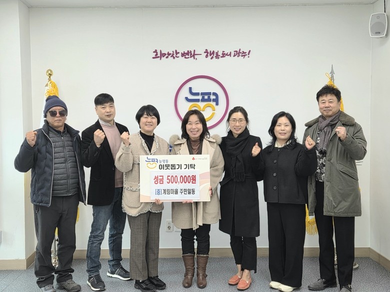 같은 날 능평동 계림마을 주민들도 성금 50만 원을 기탁했다. 계림마을은 전원단지 주민 공동체로, 2023년 추석부터 설과 추석마다 성금을 기탁하며 꾸준한 나눔을 실천해 오고 있다. 계림마을 정효원 대표는 작은 정성이지만 이웃에게 도움이 되길 바란다며 앞으로도 나눔을 이어가겠다는 뜻을 밝혔다.