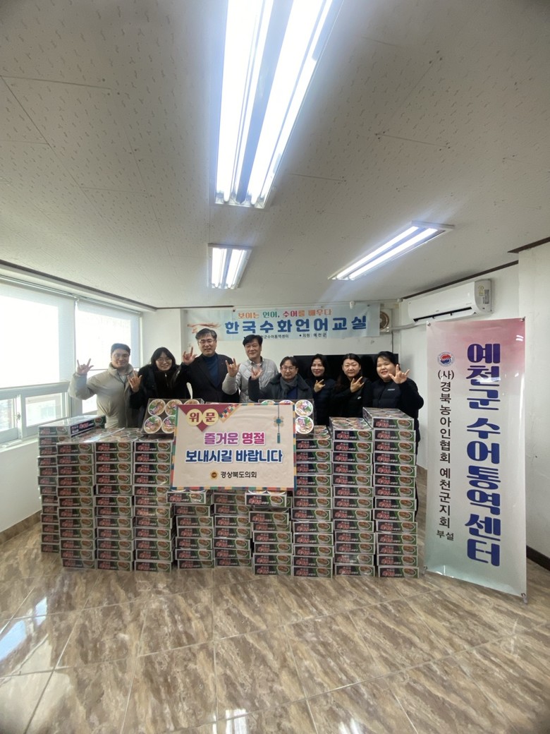 [경북 세계타임즈=한윤석 기자] 경상북도의회 도기욱 의원과 이형식 의원은 민족 최대의 명절 설을 맞아 경상북도의회를 대표해 15일(수) 예천군 예천읍에 소재한 예천군수어통역센터와 용궁면에 소재한 예천사랑마을을 각각 방문하여 도의회에서 준비한 위문품을 전달하고 관계자들을 격려했다.