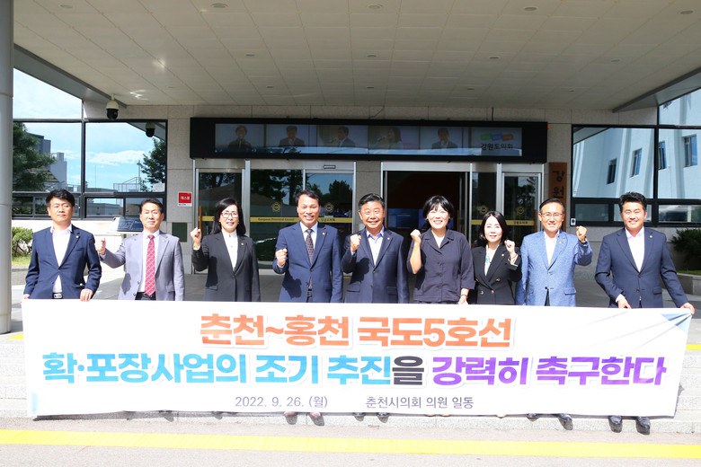 춘천시의회에서는 9월 26일(월요일) “춘천~홍천 국도5호선 확ㆍ포장사업 촉구를 위한 성명서〃를 채택한 후 도의회 안전건설위원회 박기영 위원장을 방문하여 본 사업이 조속히 추진될 수 있도록 강력히 요청하였다.