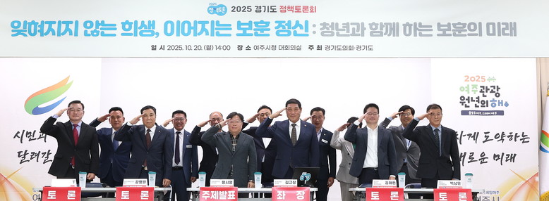 좌장을 맡은 김규창 경기도의회 부의장은 “보훈정신을 미래 세대와 일상 속에서 잇기 위한 방안으로 보훈이 기념식에 그치지 않고, AR·웹툰 등 청년 친화적 콘텐츠와 시민 참여형 문화 행사로 확산되어야 한다”고 말하고, 아울러 “독립기념관의 조속한 건립, 보훈수당 확대 등 실질적 예우를 보다 강화해야 한다”라고 제언하였다.
