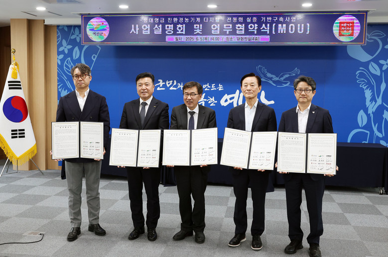 이날 도는 예산군, 한국농기계공업협동조합(KAMICO), 티와이엠(TYM), 디아이씨, 아세아텍과 업무협약을 맺고 민관 협력체계를 구축했다.