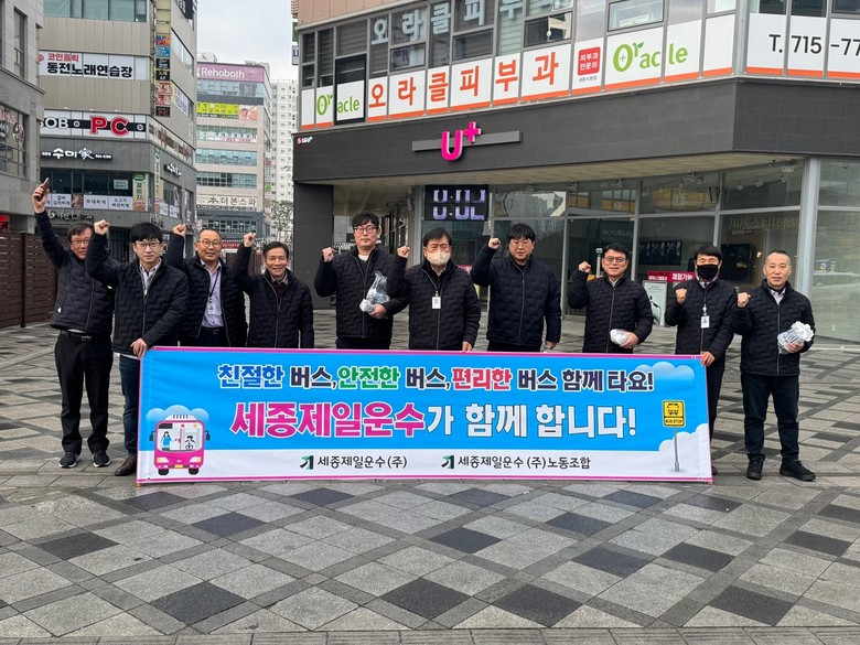 [세종 세계타임즈=이채봉 기자] 세종제일운수㈜(대표 백창욱) 임직원과 승무원은 28일 세종사랑 ‘대중교통의 날’을 맞이하여 세종시청 일원에서 시민들을 대상으로 홍보 캠페인을 실시하였다.