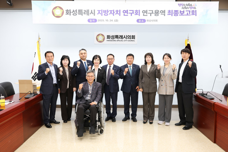 오문섭 대표의원은 “이번 연구용역 최종보고회를 통해 화성특례시에 걸맞은 재정 운영 체계와 정책 방향을 구체화할 수 있었다”며 “지속적인 연구와 역량 강화로 지방의회의 정책 기능을 한층 높이고, 시민이 체감할 수 있는 실효성 있는 정책 대안을 마련하는데 최선을 다하겠다”고 말했다.