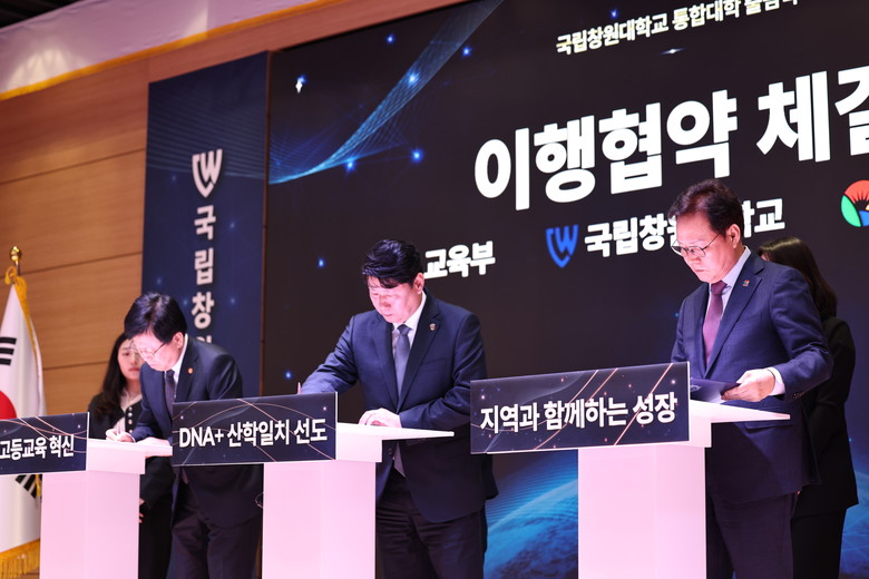 - 교육부․경남도․대학 간 통합 이행협약 체결, 5년간 운영비·장학금 지원