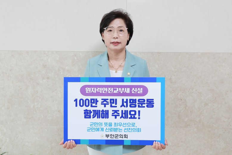 3명의 의원은“부안군을 포함한 원전 인근 지역 주민들의 안전과 복지 증진을 위한 원자력안전교부세는 반드시 신설돼야 한다”며, “부안군의회 차원에서 관련 법안 통과를 위해 지속적인 홍보 릴레이 등 최선의 노력을 다하겠다”고 밝혔다.
