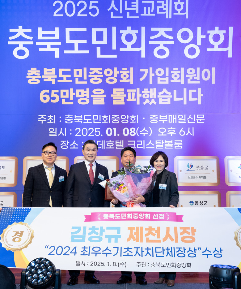 김창규 제천시장은 2022년 민선8기 제천시장에 당선된 이후 투자유치 4조원, 1500만 관광객 유치’를 목표로 지역 경제 활성화와 고도성장을 위한 기반을 마련해 왔으며, 대내외적인 경기 불황 속에서도 △데이터센터 등 2조 7,862억 원 규모의 투자유치 달성 △1100만 명 관광객 유치 달성 △105건의 전국규모 스포츠대회 유치를 통한 1,319억 원의 경제효과 창출 등이 높이 평가되어 ‘최고 자치단체장’대상을 받게 됐다.