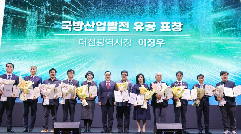 이장우 대전시장은 첨단국방과학도시 대전의 성장 기반을 구축하고 방산혁신클러스터사업 우수성과 창출 및 국방 관련 전시, 세미나 성공개최로 대전의 위상을 높인 방산기업, 연구원 및 관계 공무원 등 25명에 대해 표창장을 수여했다.