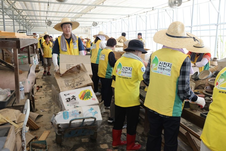폭염이 이어진 날씨 속에서 비닐하우스 내부는 실외보다도 더 높은 온도였지만, 봉사자들은 묵묵히 작업을 이어가며 서로를 격려했다.