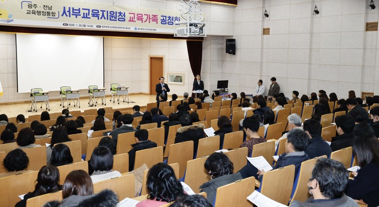 [광주 세계타임즈=손권일 기자] 광주시교육청(교육감 이정선)은 26일 광주시교육청교육연수원 중강당에서 서부권 교직원, 학부모, 시민 등을 대상으로 ‘광주·전남 교육행정통합’ 추진 현황 공유 및 의견 청취를 위한 공청회를 개최했다.