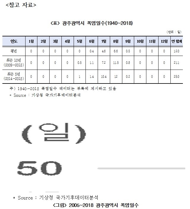 황 의원은 “우리시 폭염일수는 2005년 18일 2018년 43일 2005년 대비 25일 증가하고 최근 5년(2014~2018) 평균 폭염일수가 증가하고 있다고 밝히며” 폭염취약 계층을 위한 실질적이고 예방적인 지원을 위해 최선을 다하겠다고 말했다.