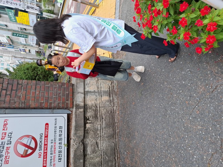이날 참여자들은 ‘횡단보도 앞 일단 멈춤, 아이 먼저 보내주세요’라는 주제로 현수막과 팻말을 이용해 교통안전 홍보 활동을 펼쳤다. 또한, 학생들의 등굣길을 지도하며 교통안전 홍보물을 배부하기도 했다.