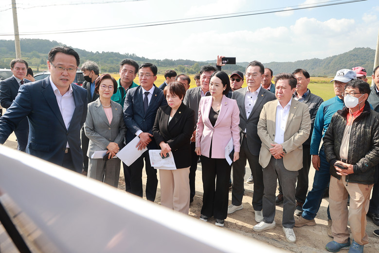 [대구 세계타임즈=한성국 기자] 대구시의회 건설교통위원회(김지만 위원장)는 제304회 임시회 기간 중 10월 16일(월) 군위군 신공항 건설부지를 찾아 화물터미널 조성 관련 보고를 받았으며 이어 군위정수장 및 군위댐을 방문해 신공항 건설에 따른 신규 용수 공급 방안 등을 확인했다.