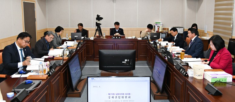 [전주시=세계타임즈 신승민 기자] 남원시의회 경제산업위원회(위원장 염봉섭)가 제270회 임시회 기간 중 남원시 2025년도 주요 업무보고를 청취했다. 염봉섭 위원장을 비롯한 경제산업위원회 위원들은 현장에서 어려움을 호소하는 농민, 소상공인 등 시민들의 생생한 목소리를 전달하며 지역 경제에 활력을 더할 다각적인 해법 마련에 심혈을 기울였다.