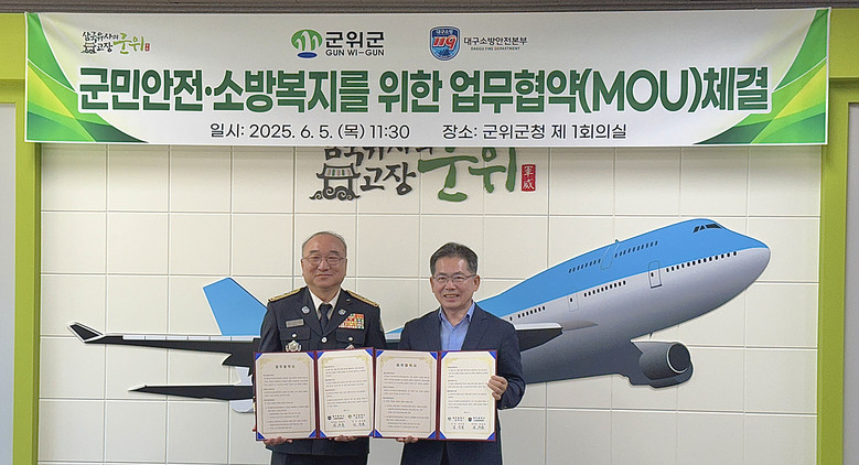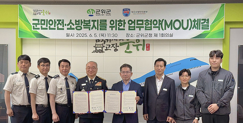 김진열 군위군수는 “이번 협약이 군위군의 안전 수준을 높이는 계기가 되길 바라며, 복지 향상과 재난 대응력 강화를 위한 협력에 적극 나서겠다”고 말했다.