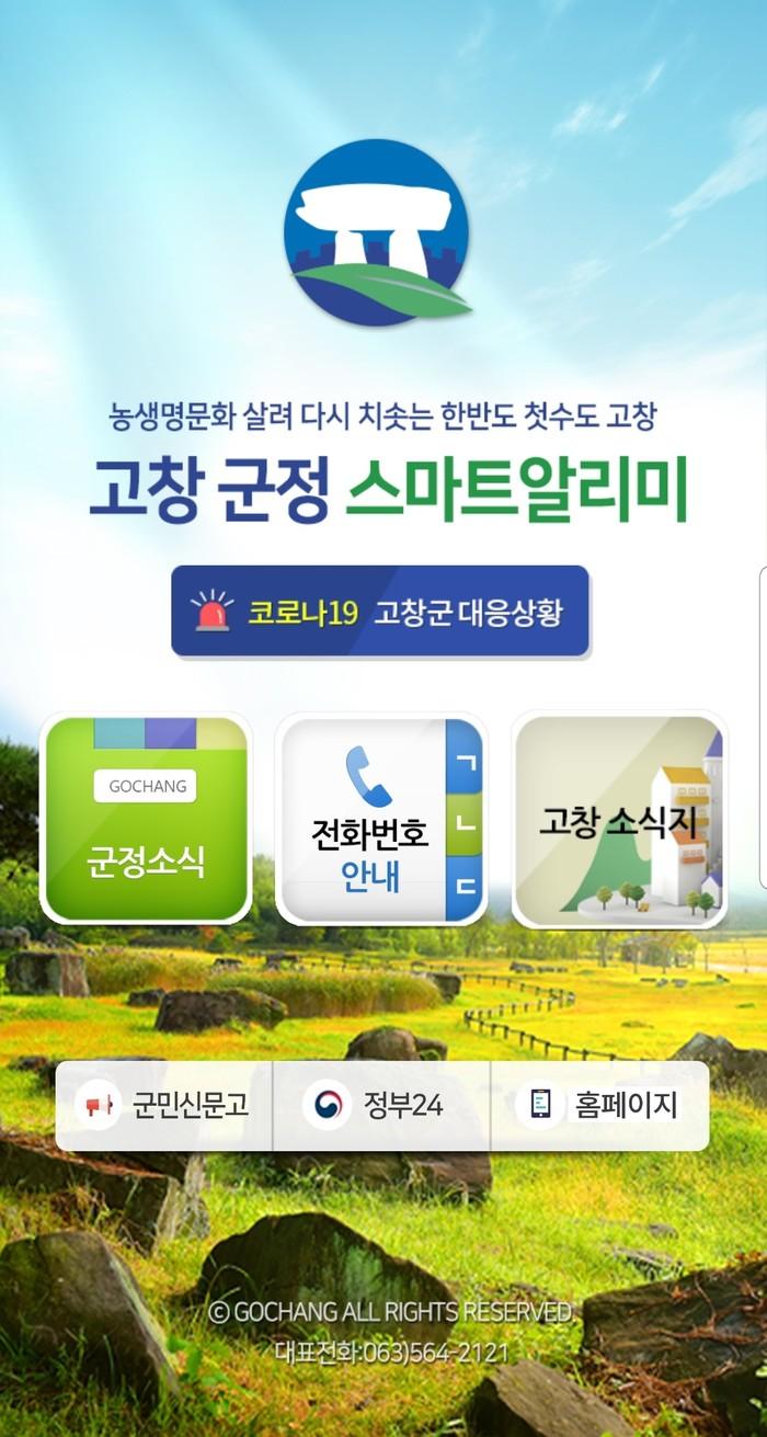 특히, 올해에는 코로나19와 관련한 고창군 대응상황을 앱에서 바로 확인할 수 있는 기능을 추가했다.